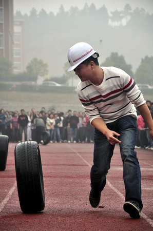 裁判和计分人员非常“敬业”的戴上跟选手一样的安全帽 应景