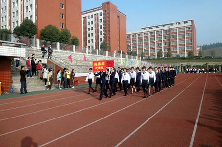 上午八点,开幕式在运动员和裁判员的入场中拉开序幕。伴随着激昂的乐曲和催人奋进的解说词,以各个辅导员所带班级为单位的参赛代表队伍迈着锵铿有力的步伐,展示各自风采。商贸旅游系党总支副书记龙凌致开幕词,他说,此次运动会的举办旨在增强同学们的体育意识,倡导我们积极投身体育锻炼,使我们拥有顽强的意志、强壮的体魄。他希望运动员在比赛中发扬风格,赛出水平。