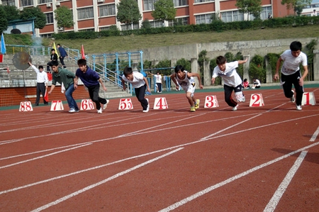 本届运动会有400多人参加,分别在短跑、长跑、接力、跳高、跳远及四人五足、滚轮胎趣味竞赛等项目中展开激烈的角逐。在比赛进行当中,运动员们奋勇争先、顽强拼搏,充分体现出商贸系学子团结向上的精神,各班的啦啦队则热情为运动员们加油助威,田径场上气氛持续热烈。商贸系团总支和学生会各个部门周密组织,紧密配合,全系师生以高涨的热情投入到本届运动会中。