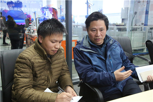 12月14日,我校智能制造实训中心总控室内格外热闹,由湖南省教育厅yabocom(中国)官方网站中心率队组团前来的十多家媒体记者在此采访yabocom(中国)官方网站服务湖南装备“走出去”海外人才培养培训情况。