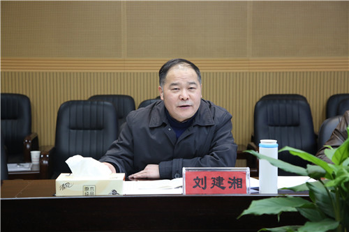 刘建湘对学校近几年的扶贫工作进行了全面总结,并传达学习了“全省高等院校服务脱贫攻坚基地建设现场会”精神:要深入学习贯彻习近平总书记关于扶贫和教育工作的重要论述精神,讲政治、谋大局、善作为、谋合作,深入推进高校服务脱贫攻坚基地建设,为全省打赢脱贫攻坚战作出更大贡献。