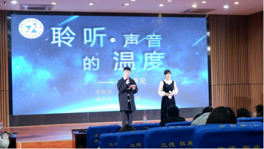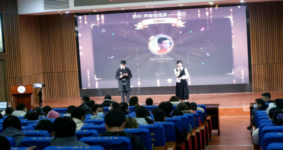 首先由主持人许多,郑配配进行开场,并介绍活动的评分细则和奖项设置。随后由图书馆任东馆长致辞——为弘扬中华传统文化,丰富校园文化生活,推进素质教育,展现青春风采,培养竞争意识,特开展“聆听声音的温度·遇见"校园朗诵比赛并预祝活动圆满成功。