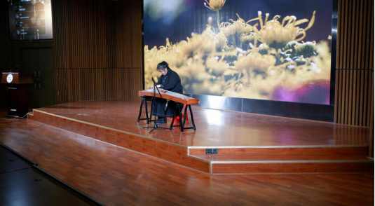 徐雷老师点评后,薪火器乐队冯紫曦带来古筝演奏《菊花台》。秦筝吐绝调,玉柱扬清曲,弦依高和断,声随秒指续。伴随着古筝优美动听的曲调,比赛接近尾声,这一次的相遇也终将离别,这一次的离别是为了下一次更好的相遇。
