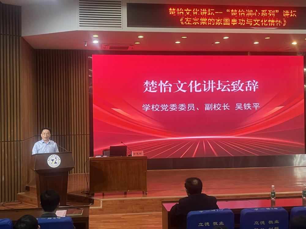 世界读书日首场活动“楚怡文化讲坛”特邀著名作家、北京大学湖湘文化研究会特别文化顾问徐志频带来“楚怡润心系列”专题讲座《左宗棠的家国事功与文化情怀》,学校党委委员、副校长吴铁平致辞。