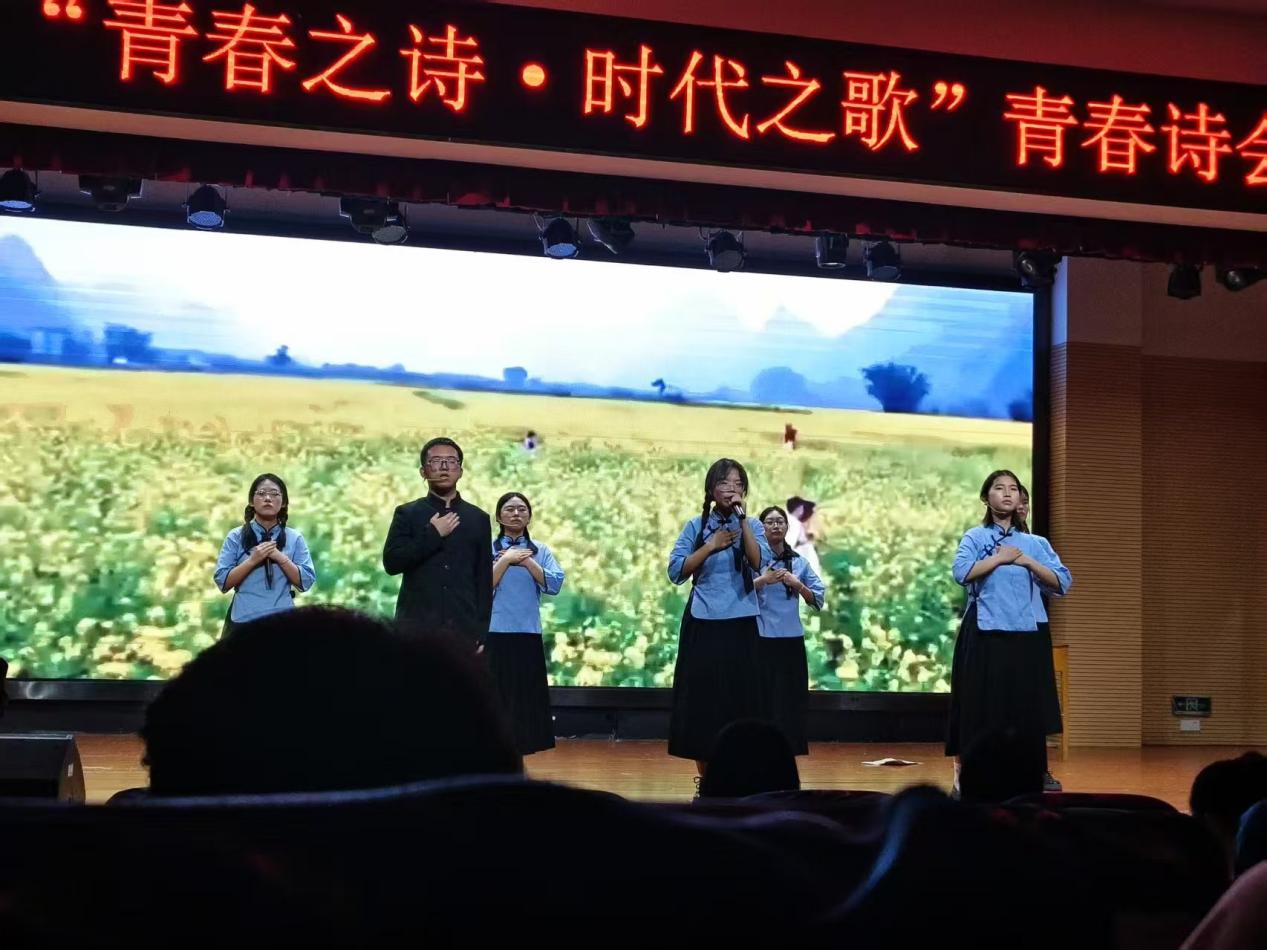 5月20日,由校团委主办的“青春之诗·时代之歌”青春诗会朗诵比赛在尚善楼1102圆满落幕。全校共6支队伍参赛,我院团总支书记汤灵带领材型24-1班10名学生凭借朗诵作品《薪火中国使命长歌》斩获第二名,以独特视角与青春热血,为现场观众呈现了一场震撼人心的红色叙事。