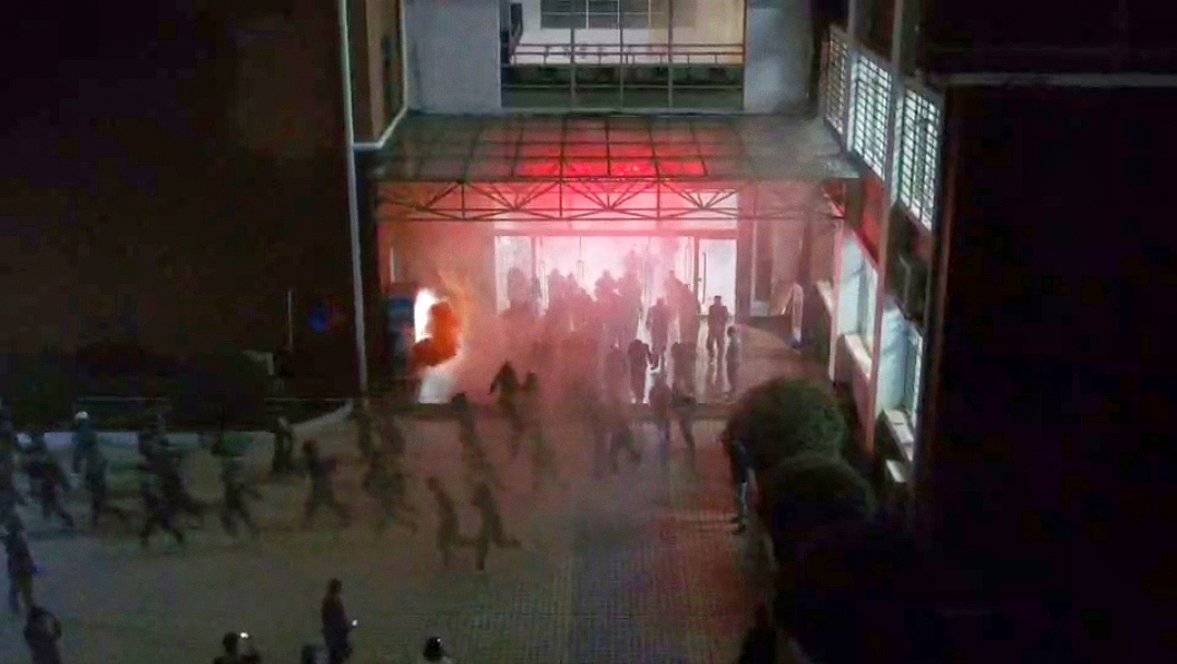 19:00,总指挥侯新华下达指令后,燃烟组在两栋楼宇点燃烟雾弹模拟火情,消防控制室核实情况并汇报,学校广播响起紧急撤离通知。响哨清楼组从一楼到七楼依次吹哨引导,新生按“就近安全出口、先低层后高层”原则撤离;秩序维护组疏导路线,紧急救护组在操场集结点待命。