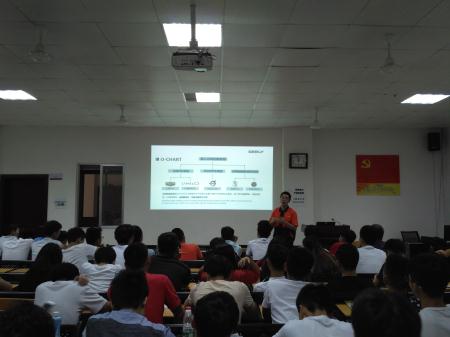 吉利订单班与卓越工艺师班成立之前,汽车工程学院特邀吉利汽车公司人力资源科长杨喜为同学们分享吉利汽车公司的详细情况。同时,易宏彬专门向有兴趣报名卓越工艺师班的同学们介绍了有关情况并解答同学们的疑惑。同时,组织吉利订单班的同学们完成了网上测评,并组织面试选拔确定了卓越工艺师班学生。