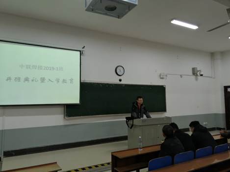 12月30日上午,我校汽车工程学院2019级焊接技术与自动化专业中联焊接2019-1班在校本部第二教学楼开班并进行线下入学教育。中联学院培训主管肖群、工程焊接教研室全体教师、中联焊接2019-1班同学参加了开班仪式,仪式全程由焊接专业负责人樊新波教授主持。