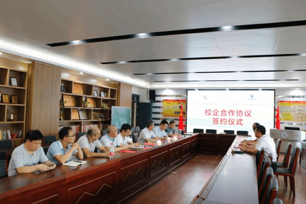 会上,双方相互介绍完参会人员后,汽车工程学院何忆斌院长重点介绍了学校模具专业,师资,实训室,技能大赛获得荣誉点情况,并介绍了双方前期沟通情况和合作协议书相关内容,明确了双方在人才培养,教师顶岗实习,技改等合作形式和细则。表示校企共同建设产学研联合培养基地,能充分发挥双方优势,在模具专业建设、产品研发等方面加强合作;在创新课题研究方面,开拓思维,突破局限,推动科学技术创新和科研成果转化;通过搭建校企交流共享平台、理论实操教学培训基地,在“产、学、研”结合推动发展上寻求突破。