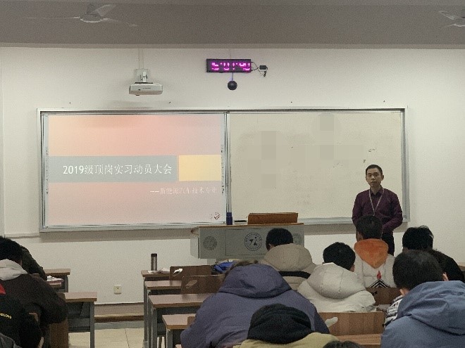 2021年12月29日,汽车工程学院在7教503召开了2022届新能源汽车技术专业顶岗实习动员大会。新能源汽车技术教研室主任李琼、副主任周云、指导老师刘冠麟、杨阳、王彦霖、范芳和新能源汽车技术专业2019级全体学生参加了动员大会。