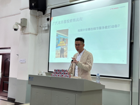 2024年6月25日下午,广汽本田再次彰显其对教育与社会责任的承诺,在yabocom(中国)官方网站尚善楼1202针对汽车学院汽车营销与服务专业的同学们成功举办了一场别开生面的“喜悦销售流程初识课”。本次公开课旨在将汽车行业前沿的销售理念与实战经验带入校园,为在校学生搭建起理论与实践的桥梁,由广汽本田销售顾问认证授课讲师张勤胜倾情主讲。