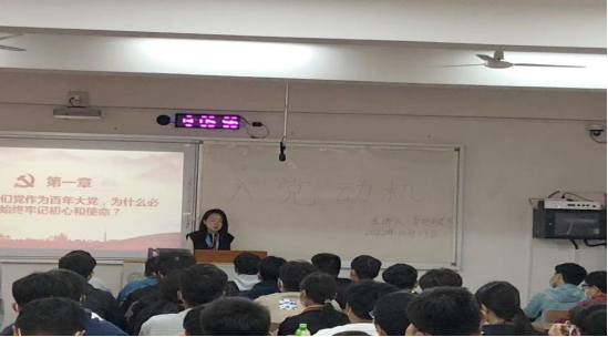 为端正初培班学员的入党动机。10月13日,汽车工程学院分党校在七教510开展第十二期初培班“入党动机”主题党课。初陪班全体学员118人全员参与。主讲人为汽车工程学院分党校校长、汽车工程学院党总支书记龚艳丽。