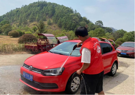 活动现场,24名学生志愿者有序分队:水枪组、清洗组、内饰组分别用高压水枪清洗掉车身、车轮、栅网等地方的泥沙,并喷洒泡沫,最后将车上的积水擦拭干净。活动期间,大家热情高涨,每个环节都有条不紊地进行着,以劳动为荣,乐在其中,力争为全院教职工提供优质服务。活动接近尾声,志愿者们对车辆进行全面检查:查看是否有水渍或脏污,玻璃是否干净。