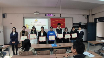 最后,汽车工程学院党务办主任戴莹老师、汽车工程学院团总支书记汤灵老师为本期优秀学员赵媛媛、王宇欣等人颁发荣誉证书并合影,对所有顺利结业、圆满完成学习任务的学员表示热烈祝贺。