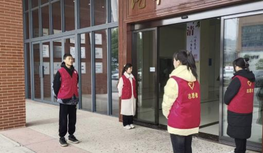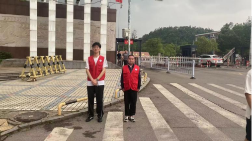 在启智楼门口,身穿志愿服的同学们在开展文明巡查执勤。他们伫立如松,以挺立的姿态诠释着文明的内涵。他们不仅是文明秩序的守护者,维护了学院的安稳秩序,更是文明的传承者,以身作则传递文明信号,为学院打造了浓厚的文明气息。