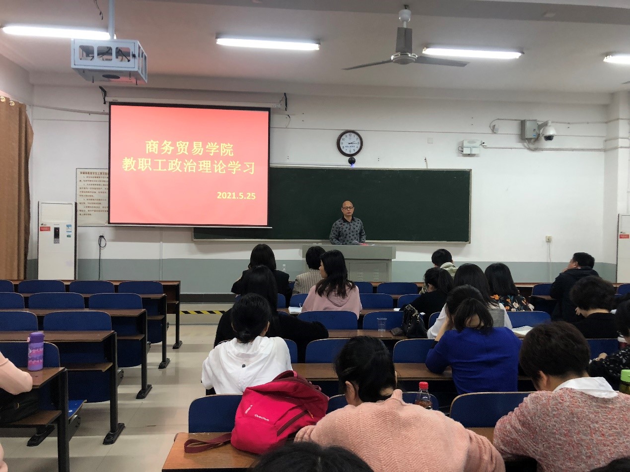 本网讯(记者 文浠浠)5月25日下午,商务贸易学院全体教职员工在2212教室开展了2021年5月政治理论集中学习,会议由学院党总支书记杨学文主持。
