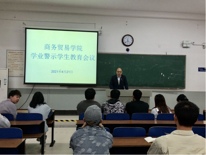 为及时帮助学生,教育学生端正学习态度,促进学生主动学习。4月21日下午,商务贸易学院在2111教室召开学业警示学生教育大会,会议由学院党总支书记杨学文主持,部分辅导员、全体受学业警示的学生参加了会议。