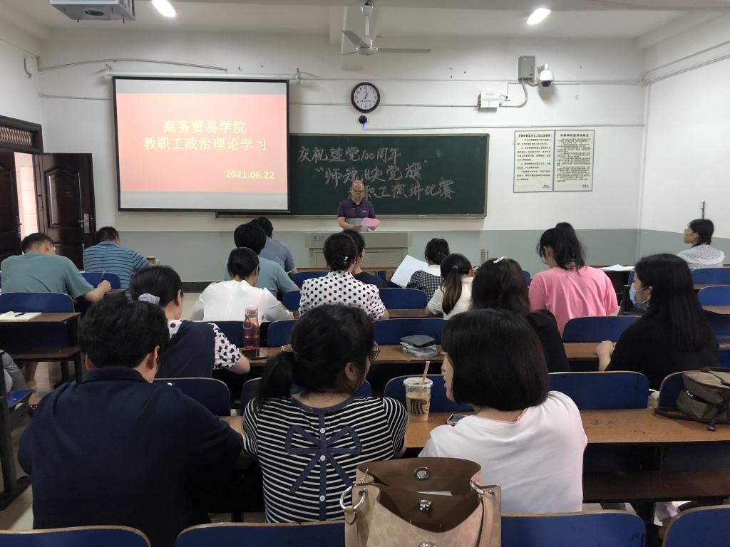 本网讯6月22日下午,商务贸易学院全体教职员工在2213教室开展了2021年6月政治理论集中学习,会议由学院党总支书记杨学文主持。