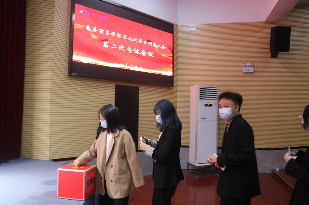 分团会议结束后,开始第二次全体会议,团总支书记谢昕中宣布主席团及学生会候选常委会竞选开始。候选人们慷慨激昂地表达了对成为学生干部的崇敬和向往,希望发挥自己的才干,展示自己的能力,继续为广大同学们服务。本届学代会本着民主,公正,公平的原则,采用无记名投票的选举方式。由团总支书记谢昕中及大三学生代表组成监票组、计票组,成功竞选的学生会干部名单将在学院官方公众号进行公示。