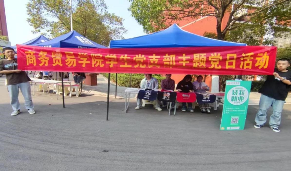 商务贸易学院学生党支部采用线下线上的活动形式。各学生党员、入党积极分子在线下通过到教室、寝室和食堂进行帆布袋的销售义卖。电子商务及市场营销的同学们结合所学专业在自媒体平台发送推文、发布信息等方式进行线上宣传。
