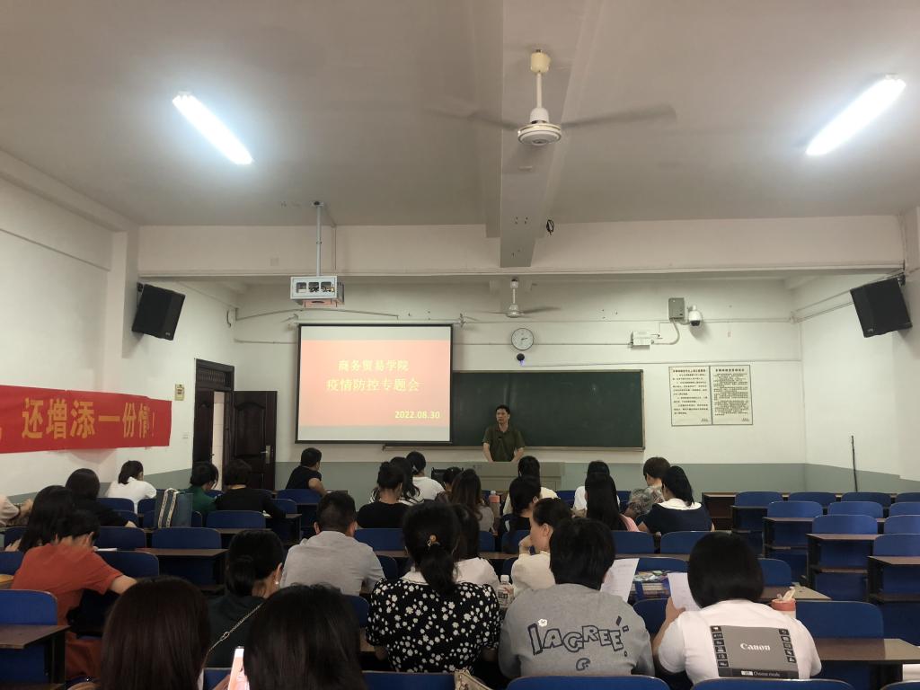 8月30日下午,商务贸易学院在2213教室召开疫情防控专题工作会,传达学校疫情防控工作会议精神,对学院疫情防控工作进行再部署、再落实。学院院长申奇志,院党总支书记李清文以及全院教职工参加了会议。