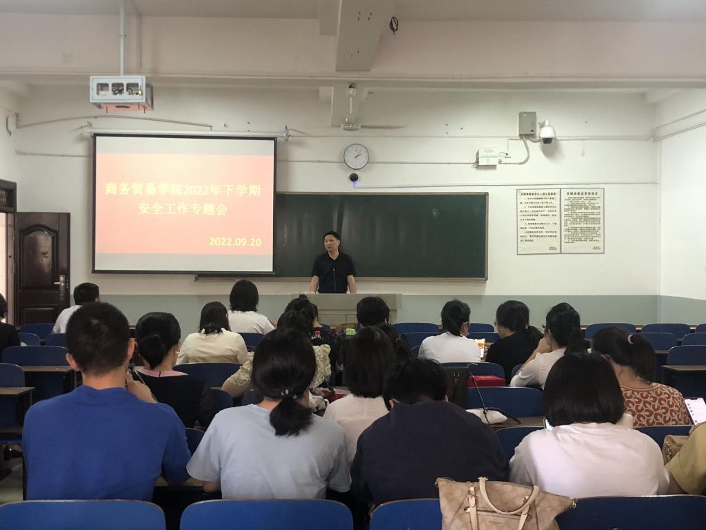 9月20日下午,商务贸易学院开展2022年下学期安全工作专题会,院长申奇志主持会议,全院教职工参加了会议。