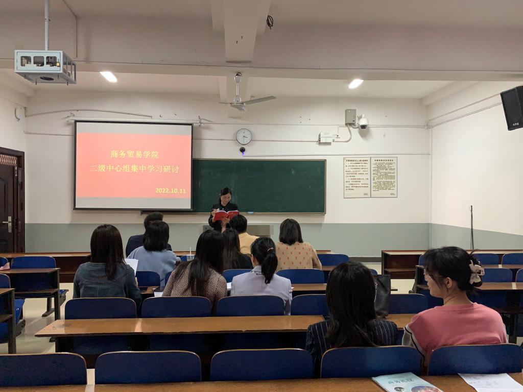 10月11日和10月25下午,商务贸易学院党总支在2213教室开展主题教育二级中心组集中学习研讨。学院党政班子成员和科级干部参加了会议。会议由党总支委员刘丽群主持。