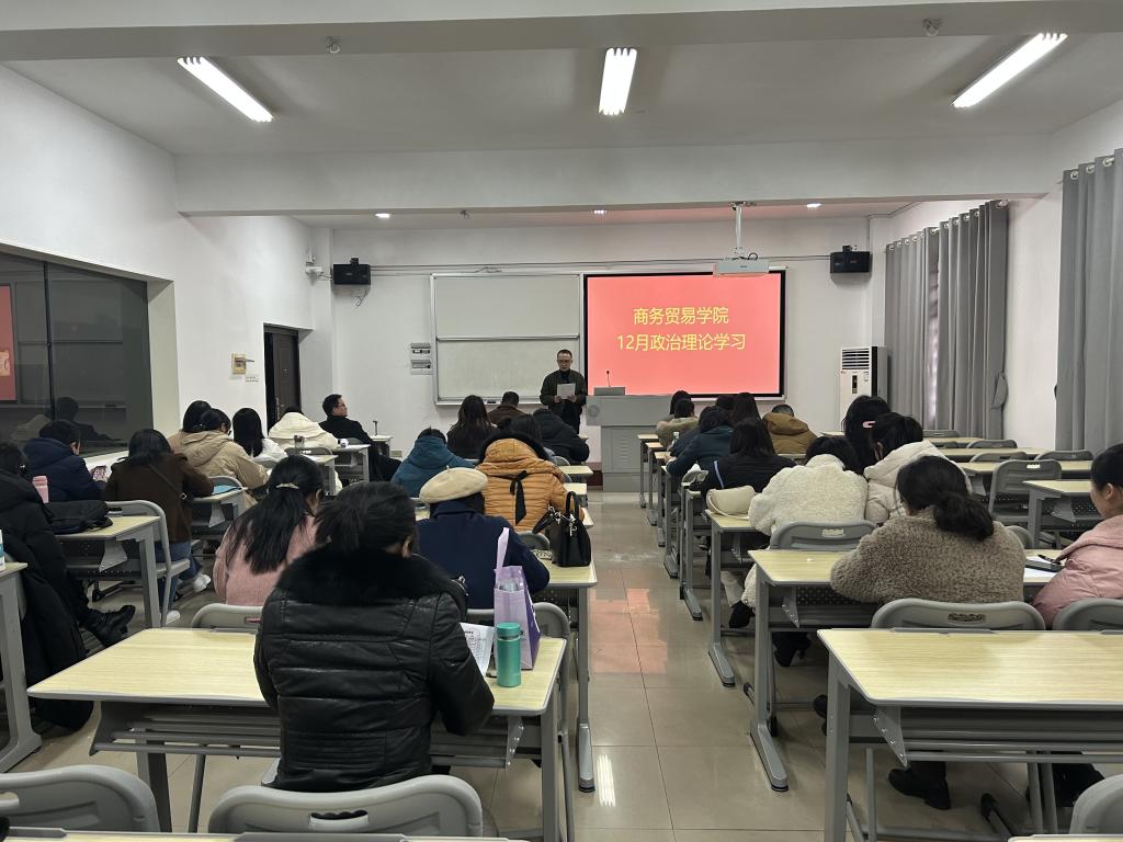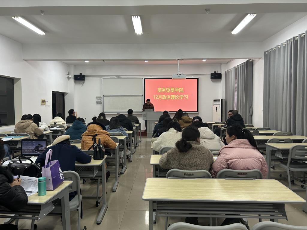 12月27日下午,商务贸易学院在5602教室开展了2022年12月教职工政治理论集中学习,全体教职员工参加学习。会议由学院党总支书记李清文主持。