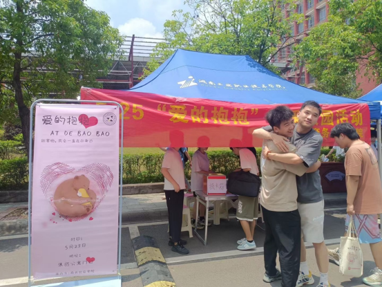 在学院心理干事谢昕中老师的指导下活动顺利进行,通过签名打卡送祝福、现场拥抱等互动活动,共有上百名同学在手手相连、彼此拥抱的过程中,感受心灵的温度,逐步敞开内心,放松心灵,舒缓压力。
