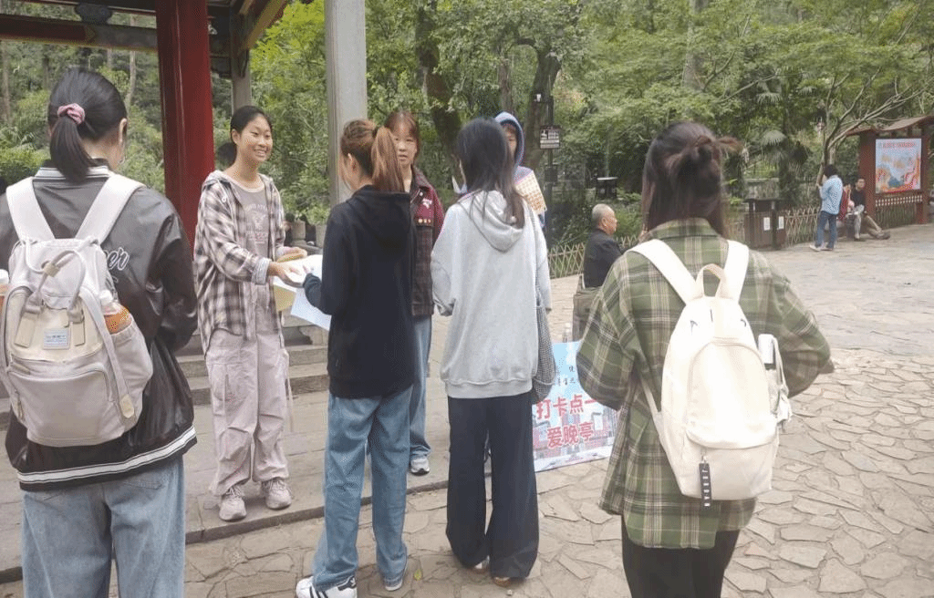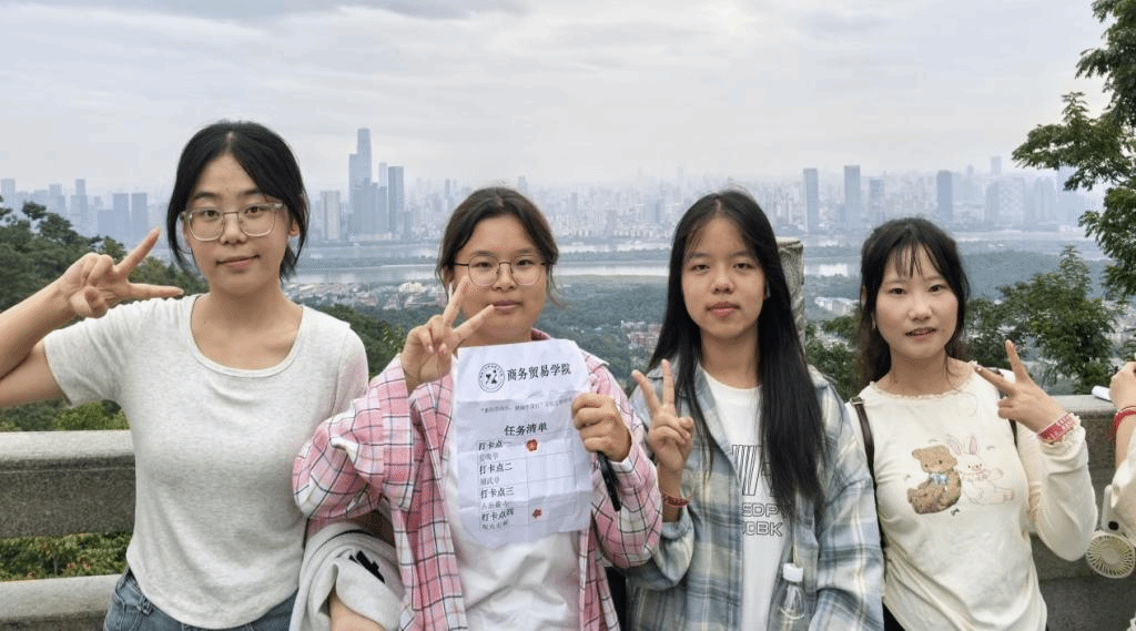 “遥知兄弟登高处,遍插茱萸少一人”“九月九日望乡台,他席他乡送客杯”在爱晚亭打卡点,学生们争先恐后背诵重阳诗句,完成挑战任务。“最近几天我一直在背诵有关重阳节和岳麓山的诗词,也让我进一步了解了重阳节这个传统节日的内涵和岳麓山的深厚底蕴。国商24-2班杨同学兴奋地展示自己的通关卡。