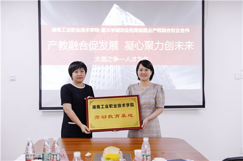 副校长成涛(左)代表学校向企业授牌“yabocom(中国)官方网站劳动教育基地”