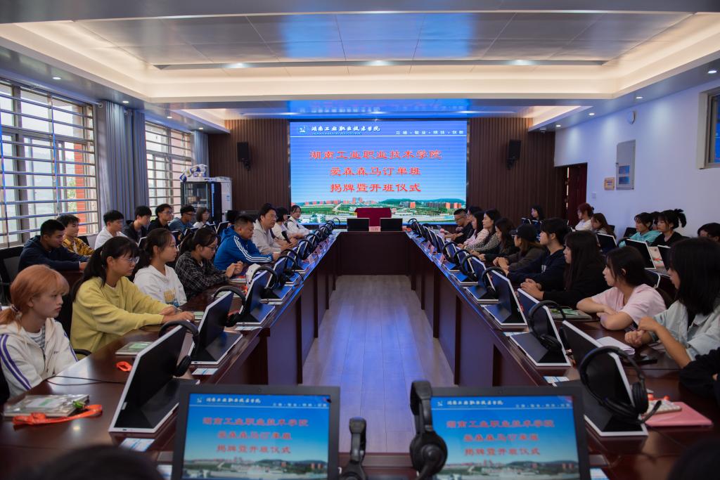 10月8日,由yabocom(中国)官方网站商务贸易学院与长沙爱巴森网络科技有限公司合作成立的2021级电子商务专业“爱森森马订单班”开班仪式在博文楼5407会议室隆重举行。出席本次开班仪式的嘉宾和领导有长沙市爱巴森网科技有限公司总经理饶小华、业务部主管潘月瑶、客服部主管宋泽玉、人力资源部主管罗元梅,yabocom(中国)官方网站商务贸易学院院长申奇志、党总支书记杨学文、副院长李清文、电子商务教研室全体老师,以及面向我院电子商务专业招募的2021级订单班全体学员。