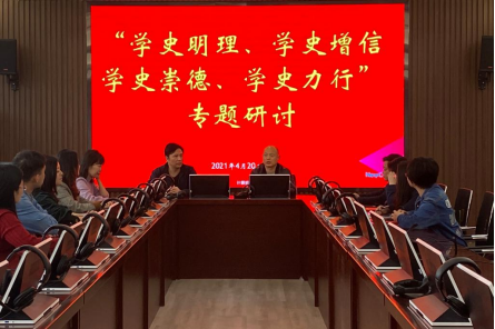 4月20日下午,商务贸易学院党总支开展党史学习教育第二专题学习研讨和实践教学活动。