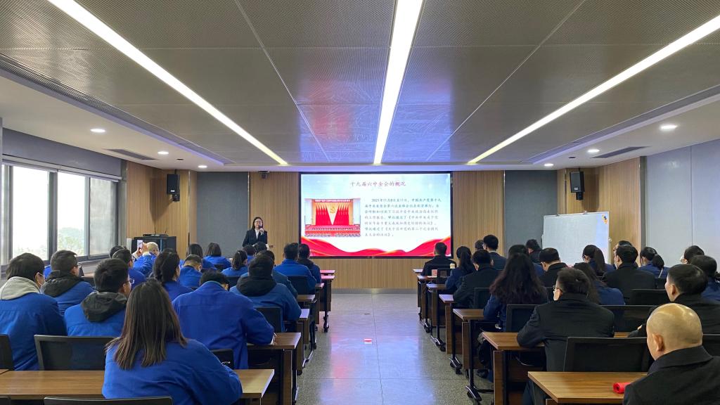 签约揭牌活动后,我校马克思主义学院教师党员李芳佳、欧阳海飞,以“学习贯彻党的十九届六中全会及历史决议重要精神”为主题为活动带来了一堂生动的党课。两位教师以习近平总书记2022年新年贺词中关于“十九届六中全会”的内容导入,结合我校实际及企业特色,选取丰富素材,就十九届六中全会的概况及重要意义、《中共中央关于党的百年奋斗重大成就和历史经验的决议》的主要内容、决议的特点及亮点,以及如何贯彻落实党的十九届六中全会精神等内容进行了讲解。