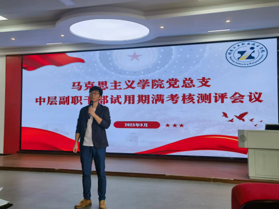 本网讯 根据学校组织部要求,9月26日下午,马克思主义学院2022年新提任中层副职干部任职试用期满民主测评会议在尚善楼1101举行,会议由肖望兵院长主持,组织人事部副部长程涛及我院全体教师参加会议。