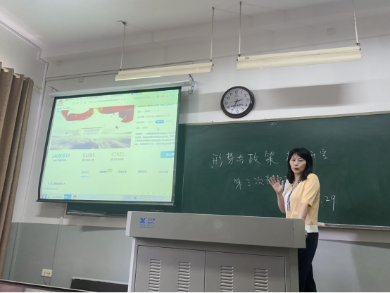 为提升教研室老师们的教学能力,高质量完成2022年下半年《形势与政策》网络课程建设的微课拍摄工作,9月29日,马克思主义学院形势与政策教研室在尚善楼1306教室召开了本学期第三次教研活动,全体教研室教师参会。
