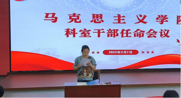 随后,组织人事处颜部长代表学校党委宣读了学院新任科室干部任命决定。