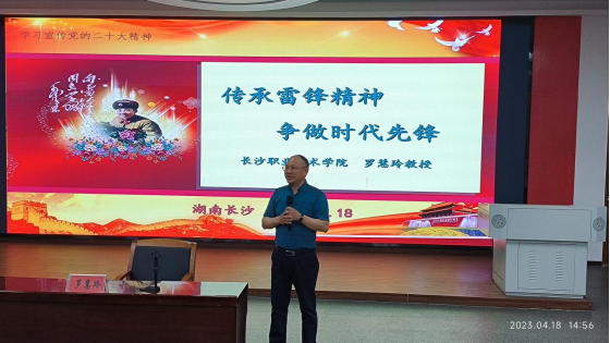 本网讯 4月18日下午,长沙职业技术学院党委副书记,长沙市“雷锋职业精神研究基地”首席专家罗慧玲教授受邀来我院作学术报告,报告主题为《传承雷锋精神 争做时代先锋》。会议由校党委副书记陈拥贤主持,我院全体教师参加。
