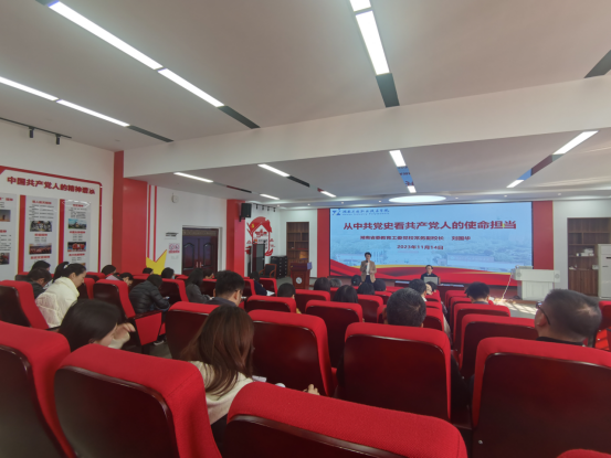 本网讯11月14日下午,我院邀请湖南省委教育工委党校常务副校长刘国华教授为全体教师作题为《从中共党史看共产党人的使命担当》的专题讲座。讲座由肖望兵院长主持。