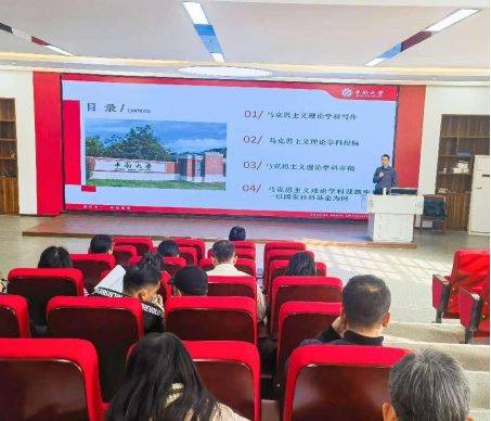 何锡辉博士以“马克思主义理论学科的论文写作及课题申报”为题,分别从马克思主义理论学科论文写作、投稿、审稿以及课题申报等方面进行了深入浅出的阐释。他结合自身在科研工作中的实际经验,鼓励马克思主义学院教师,尤其是青年教师树立信心,找准定位,把握专一研究方向,努力争取科研成果上的突破。讲座结束后,学院教师与何博士就科研工作的相关内容进行了交流互动。