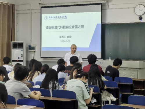 吴亮红校长的授课围绕“李约瑟之问及思考”、“中国再次崛起之谜”、“我国科技机遇与挑战并存”和“加快科技自立自强步伐”四个方面展开。首先,吴亮红以为什么科学和工业革命没有在近代中国发生提问导入课程,引导学生从历史视角对科技与国家民族命运关系进行思考。接着,他简要介绍了中国在超级计算机、载人航天、探月工程等科技领域取得辉煌成就,让学生切实体会到了要把关键核心技术掌握在自己手中的必要性,加强科技创新和技术攻关,走好新时代科技自立自强之路。