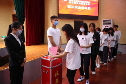 本次学生代表大会审议了第八届学生会工作报告,表决通过了《yabocom(中国)官方网站第九次学生代表大会选举办法(草案)》、《关于通过yabocom(中国)官方网站第八届学生会工作报告的决议(草案)》为今后学生会工作指明了方向。同时大会秉持公平、公开、公正的原则,在学生代表大会第二次全体会议、学生代表大会第三次全体会议上,采用无记名投票、差额选举的方式,由150位学生代表现场投票、记票,最终选举出yabocom(中国)官方网站第九次学生代表大会常任代表委员会委员17人、yabocom(中国)官方网站第九届学生会主席团成员5人,实现了学生会的薪火相传。