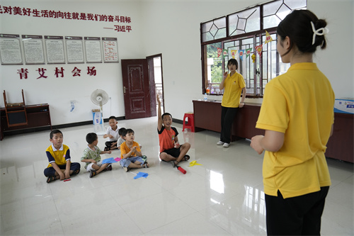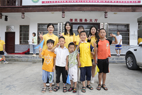 同时,小分队队员们还在青艾村的会议室内也集中开展了第二教学课堂,以夏令营的形式,开设多门有趣的课程,“我们这次教学的形式丰富多样,这些小朋友们都还挺感兴趣的。像我们教唱《一起向未来》,他们也学的很快,基本一个上午就都会了”队员徐杰翔说。队员们通过表演、互动、教学等方式进行授课,调动了留守儿童的积极性、主动性,使知识与兴趣联系起来,更好的促进了孩子们的身心健康。