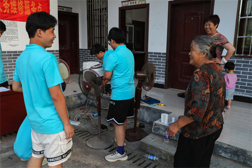 今年的电子义务维修方式分为定点维修和上门维修两种。在维修服务点,带队队长对村民送来的家电进行信息登记后,队员们对家电进行有序维修。同时为方便村民,队员们同时在周边居民家中询问,针对不便移动的家用电器或村民行动不便的情况实施上门维修服务。“我这几天一直看他们在这里修,也拿我家的过来试试”村民李奶奶一直看着队员们捣鼓村民送来的电器,而经过修理她的风扇又重新转动了起来,“这些娃娃们看起来年纪不大,修起这些东西来很利索啊”。