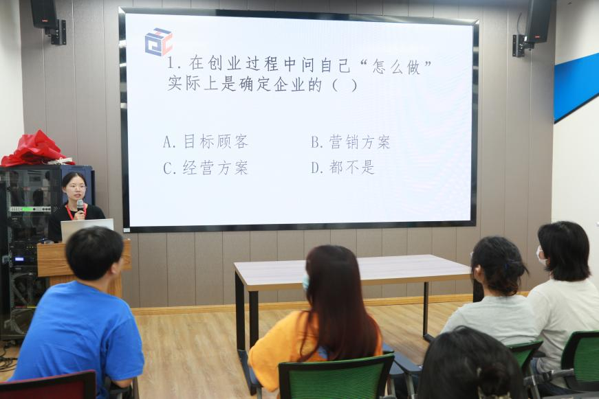 最后进行了创新创业知识竞赛,大家都踊跃举手回答,现场氛围十分活跃。