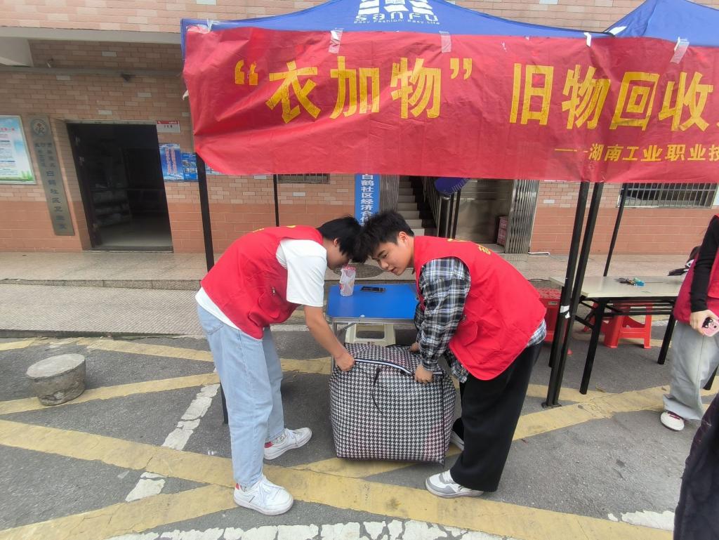 4月22日是第55个世界地球日,为推动可持续发展理念,学习贯彻习近平生态文明思想,校青年志愿者协会在岳麓区白鹤社区开展了“衣加物”公益捐赠活动。