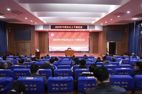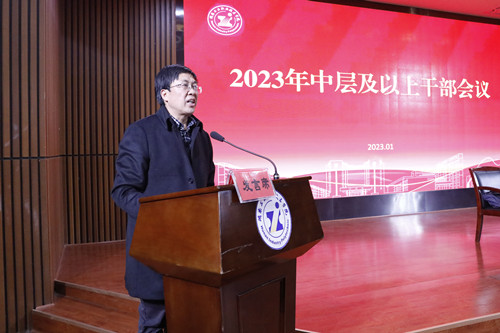 本网讯 1月10日下午,我校在图书馆多功能报告厅召开2023年中层及以上干部会议,全体校领导、全体中层干部参加会议。党委书记刘建湘主持,并作学校2022年工作总结和2023年工作部署讲话。