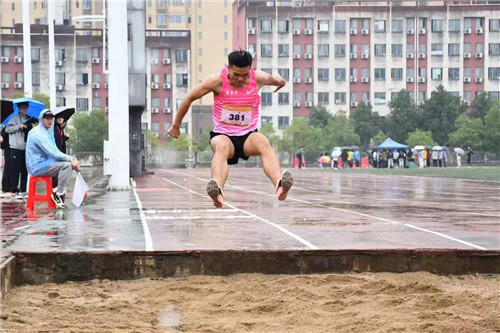 男子一百米决赛冠军、信息工程学院计软20-3班赵科在雨中夺冠,他说道:“雨天可能会影响到自己的节奏,但也会激发自己更大的潜能。”他表示,在训练中努力,才能在比赛中发挥。