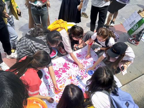 各学院代表队分别在学校田径场、新纪元广场、鹤鸣山及图书馆4个打卡点完成步步为“圈”、你画我猜、心理知识问答、伶牙俐齿及集体跳长绳等校园定向拓展活动。整个过程中穿插微笑墙、烦恼墙及心愿墙环节,各代表队须在微笑墙下的相框内拍照留念,定格下最美好的笑容,前往下一关;在烦恼墙下,每位队员写出1条烦恼,贴在烦恼墙上,用这种方式释放烦恼;心愿墙下,每位队员使用颜料,用手掌进行彩绘,写下祝福和愿望。活动最后,各代表队再次回到田径场,团结协作共同摆出爱心“工”字,合影留念。