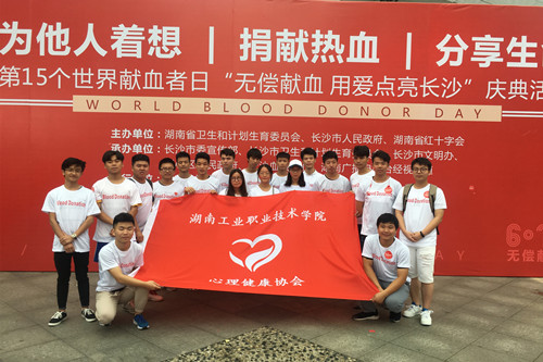 长期以来,学校高度重视无偿献血工作和各类志愿服务活动,特别注重培养学生关心社会、关爱他人的社会主义道德风尚,把动员学生积极参加无偿献血活动作为引导广大学生培育和践行社会主义核心价值观的具体行动。2016—2017年,学校义务献血人数达2014人次,献血数量达744200毫升,学校多次受到长沙市血液中心嘉奖,连续多年获高等院校无偿献血先进单位奖。校园内已形成践行社会责任,勇于无偿献血的良好氛围。